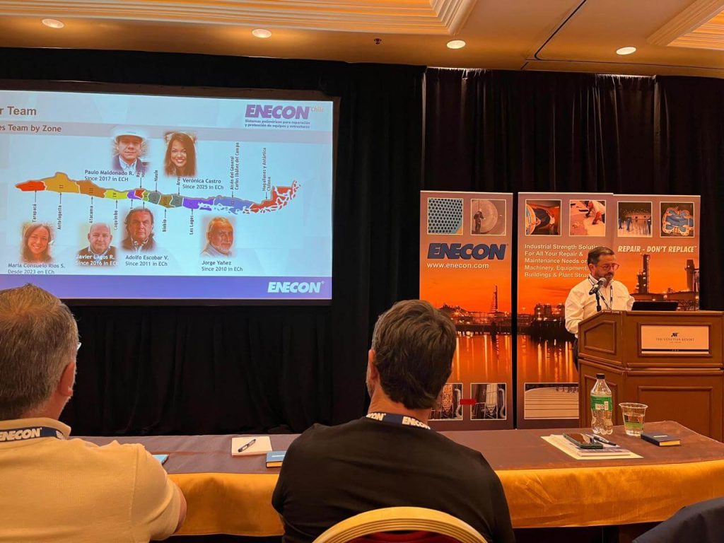Durante el primer día del evento, Ricardo Schaffner fue portavoz de la compañía y presentó los avances, proyectos y desarrollos que ENECON Chile está impulsando en la región.
